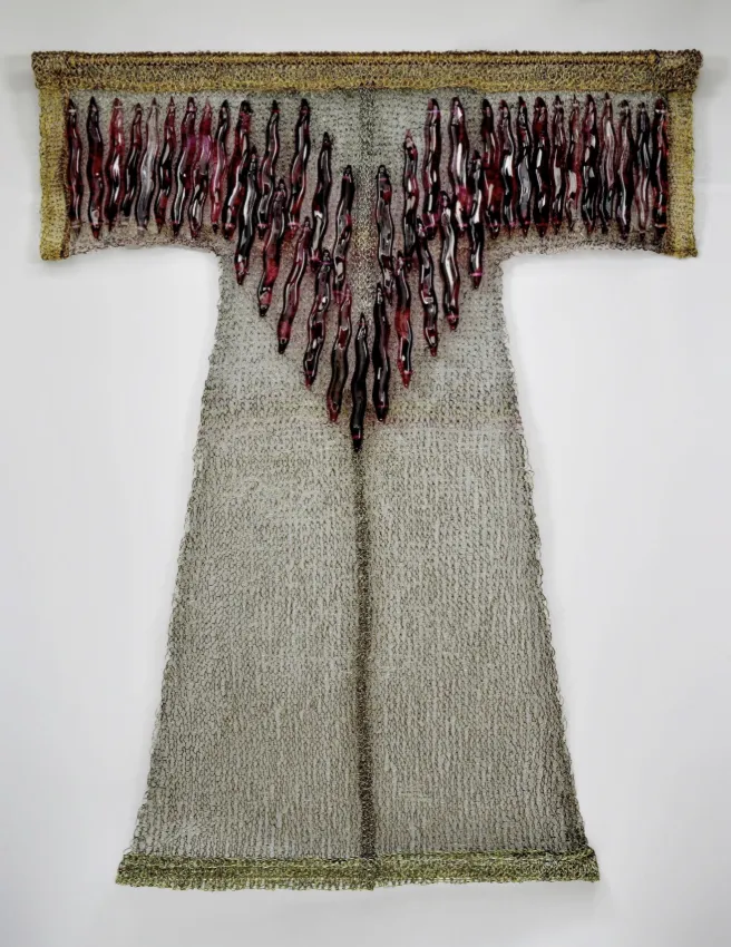 - Transparent Hot Cast Glass, Hand-Woven Silver, Stainless Steel Mesh