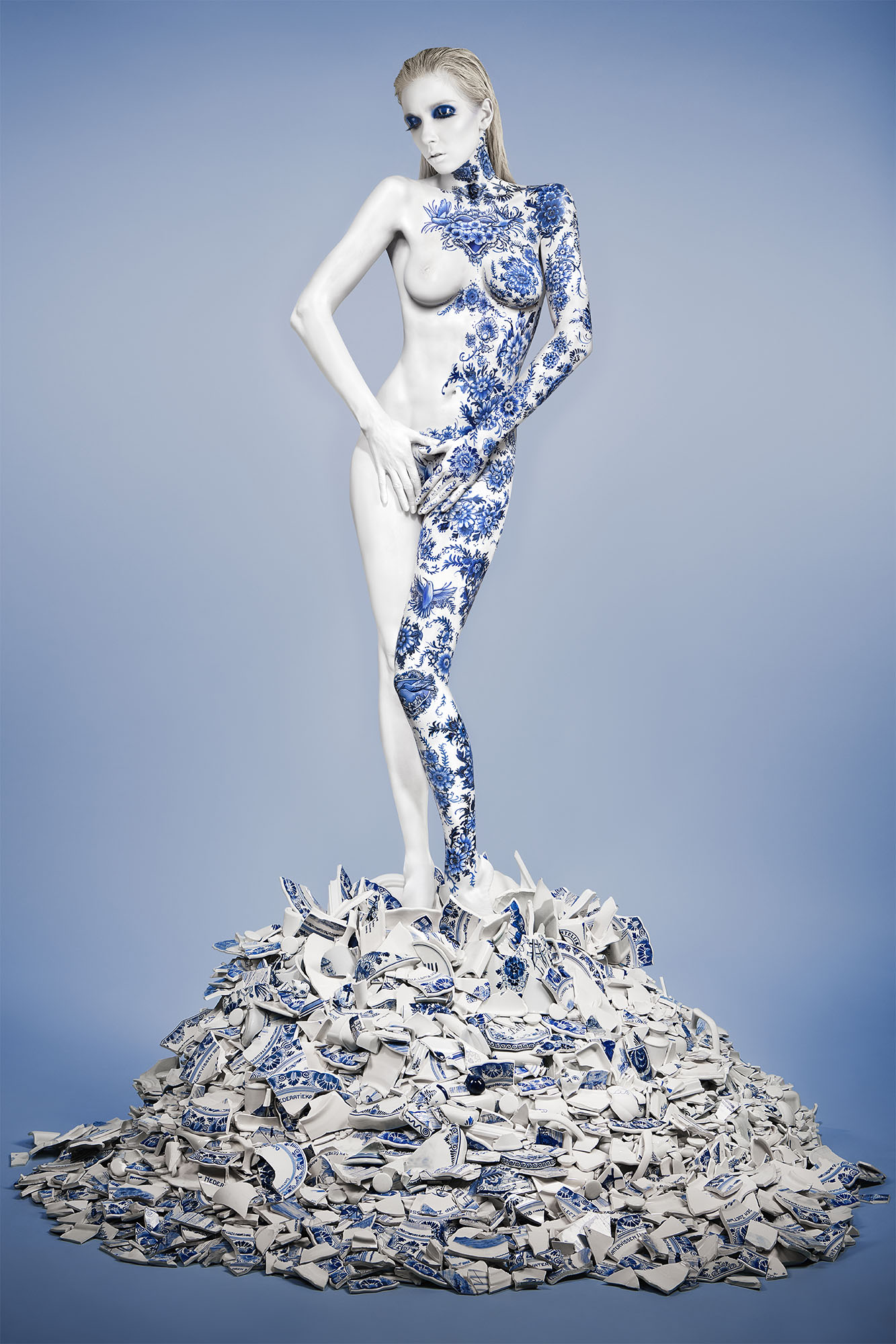 Leriche’s photographs are explosively emotional and striking in composition – a direct result of the fact that Leriche meticulously “constructs” each, layer by layer by layer. A single photoshoot typically requires a week of 18-hour days, due to the elaborate design and direction, not to mention Leriche’s unparalleled attention to detail.